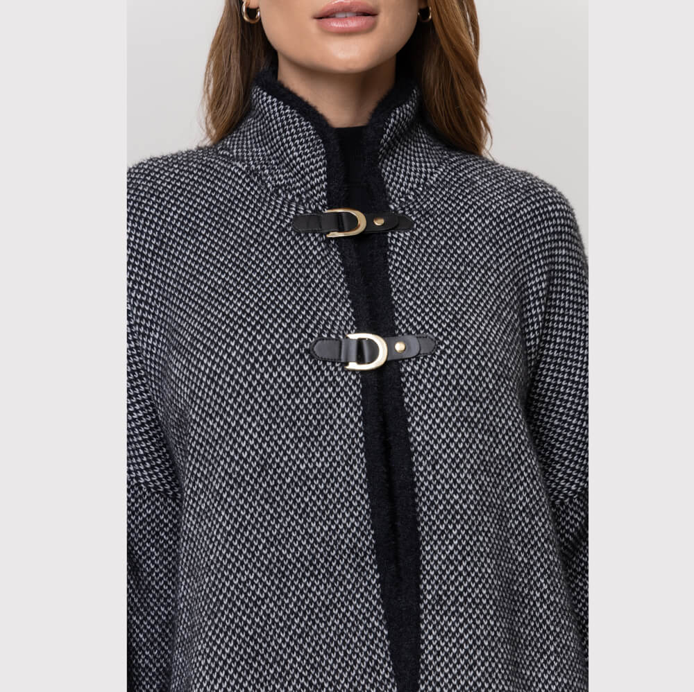 PRINCIPAIS CARACTERÍSTICAS CAPA TRICOT GORADIN COM FECHAMENTO EM ALAMARES - 26182 NOIR MÉLANGE